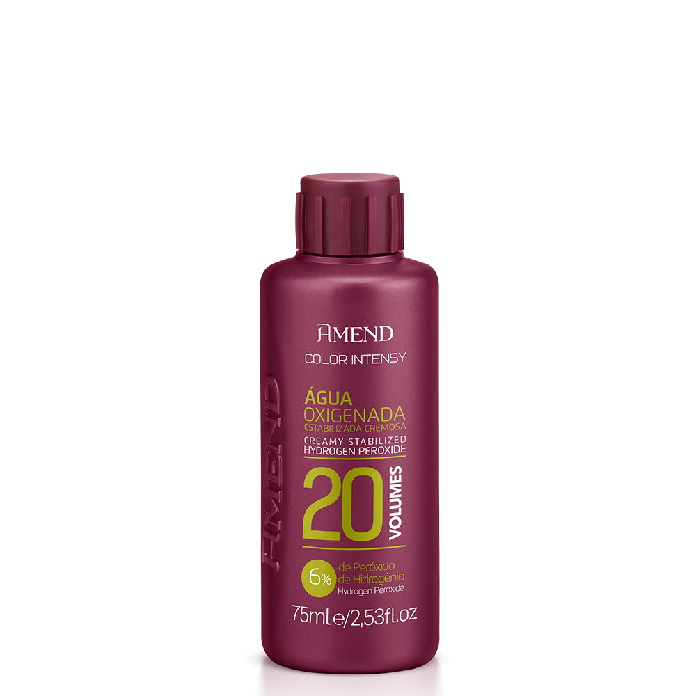 A Água Oxigenada Cremosa Amend Color Intensy 20 Volumes 75ml é indicada para uso profissional em processos de coloração e descoloração capilar. Sua fórmula contém peróxido de hidrogênio em concentração ideal para abrir as cutículas dos fios, permitindo que os pigmentos da tintura penetrem de forma eficaz. Possui textura cremosa e suavemente perfumada, garantindo aplicação prática e resultados uniformes. É recomendada para todos os tipos de cabelo e pode ser utilizada em conjunto com as tinturas da linha Amend Color Intensy.