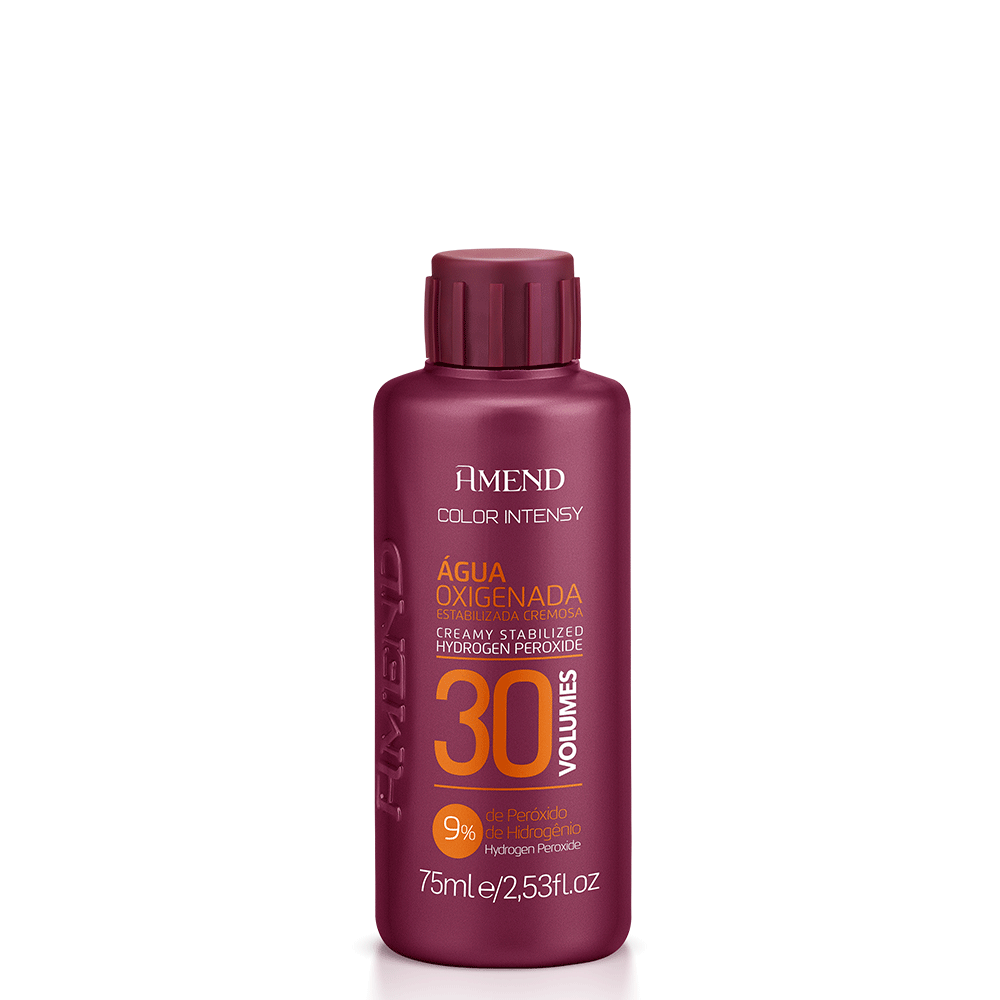 A Água Oxigenada Cremosa Amend Color Intensy 30 Volumes 75ml é indicada para uso profissional em processos de coloração e descoloração capilar que necessitam de maior clareamento. Sua fórmula contém peróxido de hidrogênio em concentração ideal para abrir as cutículas dos fios, permitindo que os pigmentos da tintura penetrem profundamente. Possui textura cremosa e fragrância suave, garantindo aplicação prática e resultados uniformes. Compatível com toda a linha de colorações Amend Color Intensy, é recomendada para quem busca clarear até três tons com segurança e eficácia.