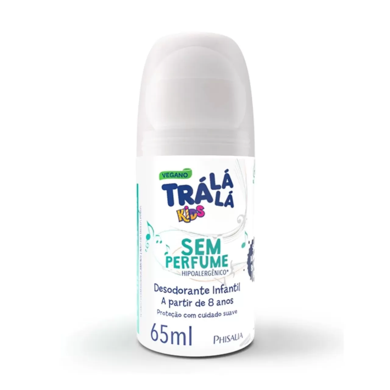 Desodorante Trá Lá Lá Kids Sem Perfume Roll-on 65ml proteção suave pele sensível