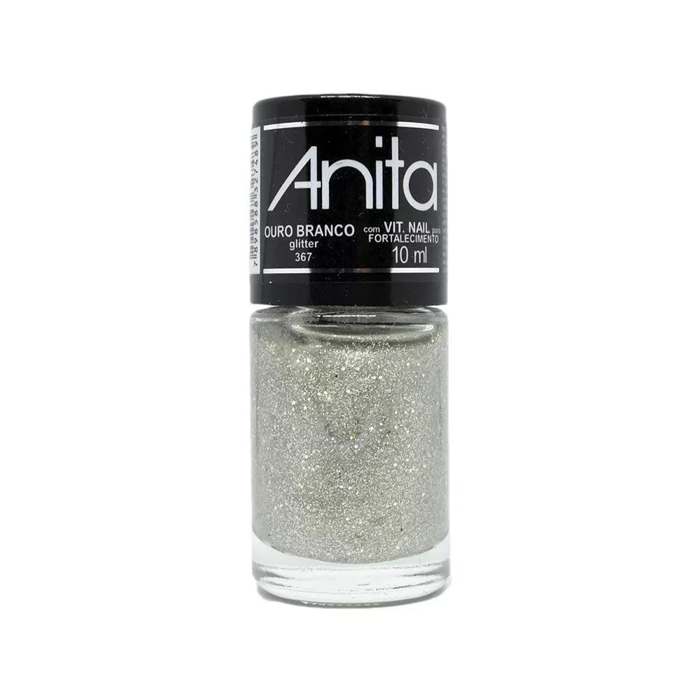 Esmalte Anita Glitter Ouro Branco 10 ml brilho intenso vegano fortalecedor