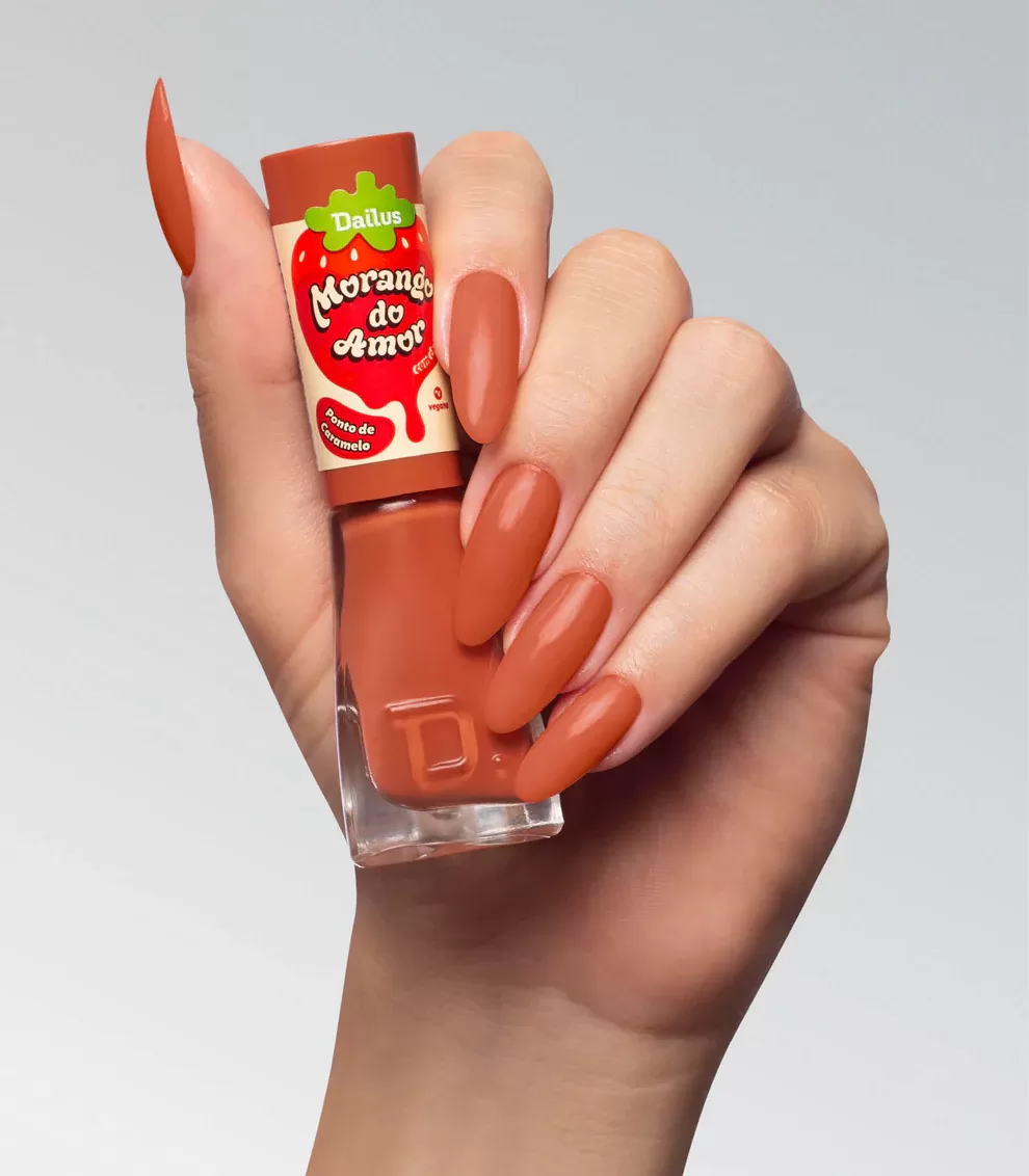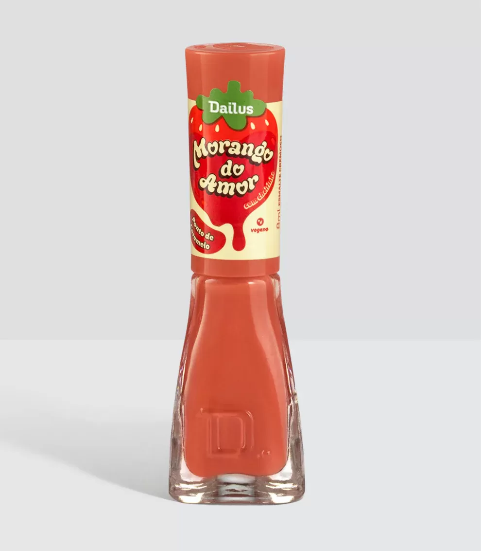 O Esmalte Dailus Morango do Amor Ponto de Caramelo 8ml faz parte da coleção inspirada na sobremesa icônica que conquistou o público. Desenvolvido com acabamento cremoso, fragrância doce e embalagem prática, oferece uma aplicação uniforme e cobertura impecável. Sua fórmula proporciona brilho intenso, secagem rápida e longa duração, ideal para quem busca praticidade sem abrir mão da beleza. Indicado para todos os tipos de unhas, é perfeito para quem deseja destacar o estilo com sofisticação e qualidade.