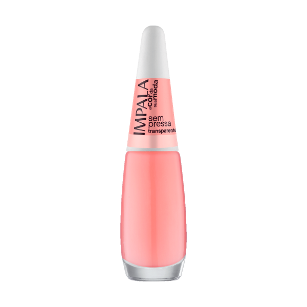 O Esmalte Impala Transparente Sem Pressa 7,5ml faz parte da coleção A Cor da Sua Moda, trazendo praticidade e elegância para o dia a dia. Com fórmula de secagem rápida, acabamento transparente e textura leve, é perfeito para quem busca unhas bem cuidadas e com aspecto natural. A embalagem compacta de 7,5ml é prática e fácil de levar na bolsa, ideal para retoques rápidos. Indicado para todos os tipos de unhas, pode ser usado sozinho ou como top coat para intensificar o brilho de outros esmaltes.