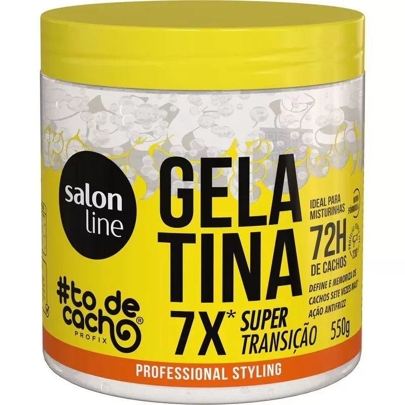 A Gelatina Capilar Salon Line #ToDeCacho Super Transição 550g foi desenvolvida para cabelos ondulados, cacheados e crespos que estão passando pela fase de transição capilar. Sua fórmula vegana e liberada (sem sulfato, silicone, petrolato e óleo mineral) contém óleos de jojoba e girassol, que hidratam e fortalecem os fios. Com textura leve e aroma suave de coco, proporciona fixação intensa, definição duradoura e controle do frizz, sem deixar resíduos.