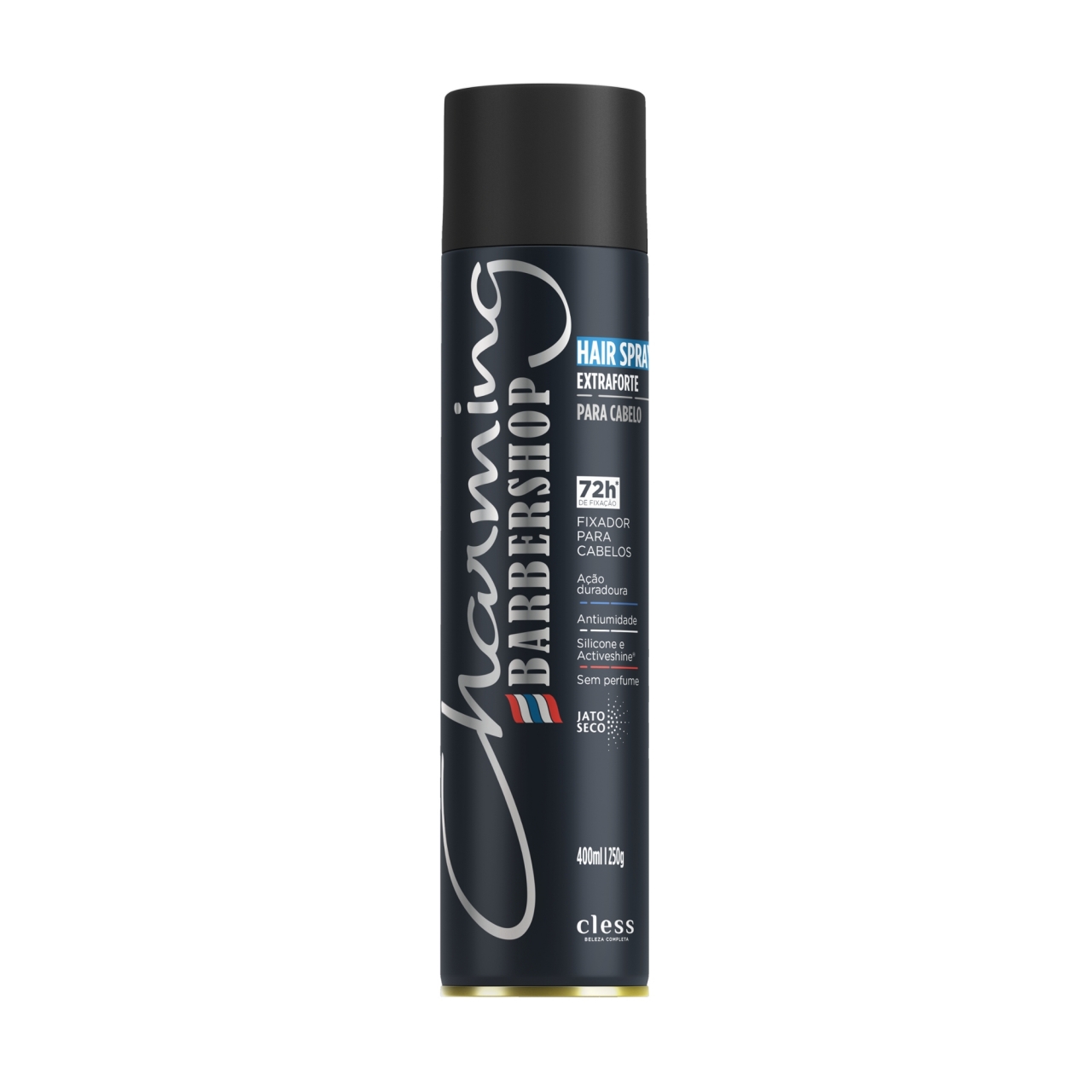 O Hair Spray Charming Barber Extra Forte 400ml, da Cless, foi desenvolvido especialmente para o público masculino que busca fixação poderosa e duradoura em penteados clássicos ou modernos. Sua fórmula com silicone e ativos condicionantes protege os fios contra a umidade e garante acabamento impecável sem resíduos. Com jato seco e textura leve, mantém o cabelo firme e alinhado por horas, sem perder o aspecto natural. Embalado em aerossol de 400ml, é ideal para uso diário ou profissional em barbearias.