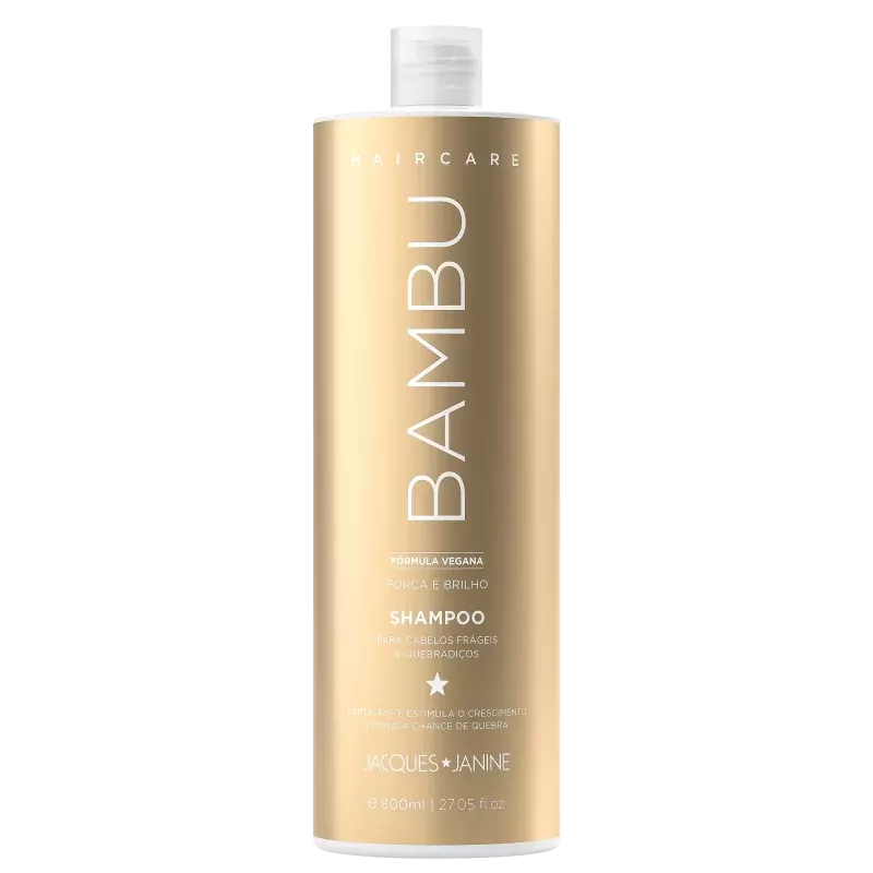 O Jacques Janine Shampoo Hair Care Bambu 800ml foi desenvolvido para fortalecer cabelos frágeis e quebradiços. Sua fórmula vegana é enriquecida com extrato de bambu, ativo natural conhecido por suas propriedades regeneradoras e hidratantes. O shampoo limpa suavemente, promovendo resistência, brilho e maciez aos fios. Ideal para uso diário, ele ajuda a reduzir a quebra e revitaliza a fibra capilar sem agredir o couro cabeludo.