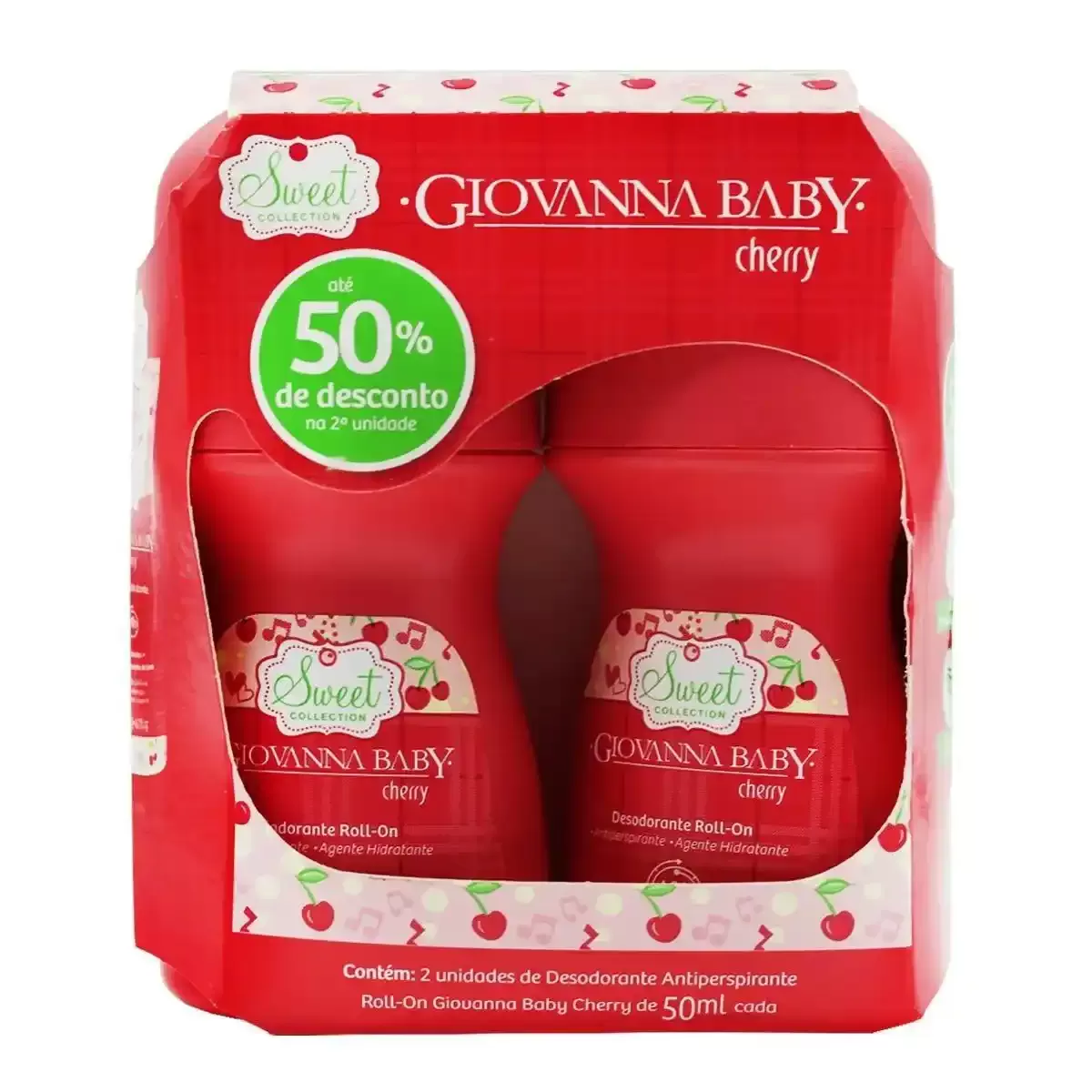 Kit 2 Desodorantes Giovanna Baby Cherry Roll-On 50ml proteção conforto