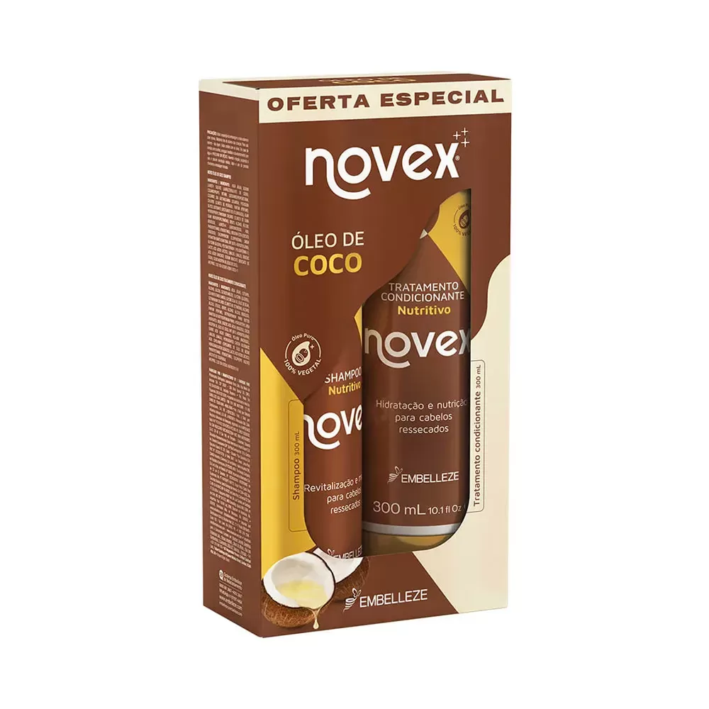 O Kit Novex Óleo de Coco Shampoo + Condicionador 300ml é uma dupla essencial para cuidados capilares: