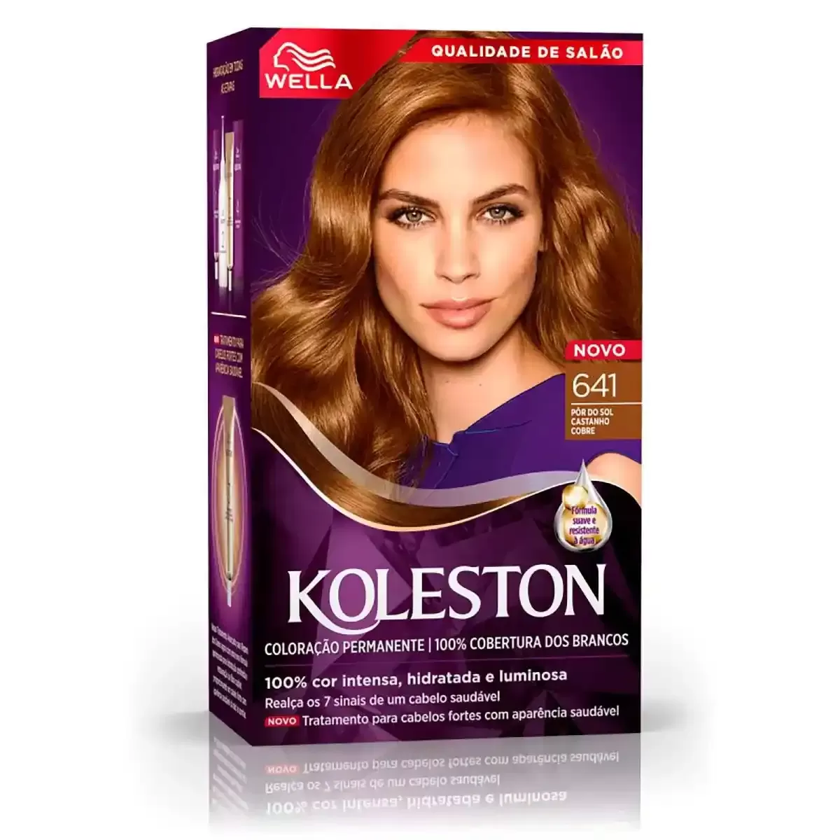 A Koleston Tintura 641 Castanho Cobre serve para colorir os cabelos de forma permanente, oferecendo cobertura completa dos fios brancos e realçando a beleza com um tom castanho cobre vibrante e luminoso. É indicada para quem deseja durabilidade da cor, hidratação e brilho intenso.
