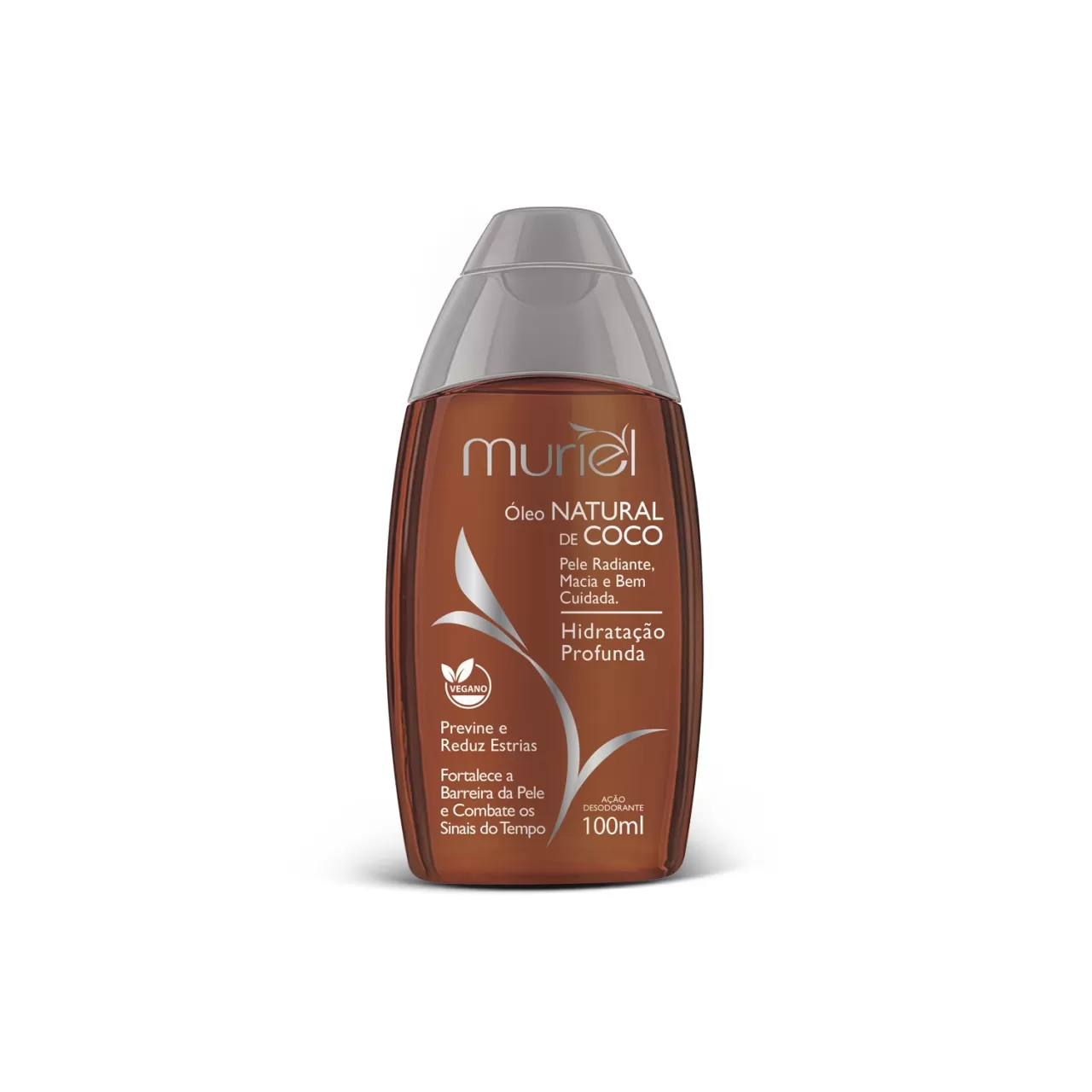 O Muriel Óleo Corporal Coco 100ml é um óleo hidratante com ação desodorante, desenvolvido para proporcionar hidratação intensa, perfume suave e prevenção de estrias. Sua fórmula contém óleo natural de coco, conhecido por suas propriedades nutritivas e emolientes, que devolvem à pele a sensação de maciez e elasticidade. Com textura leve e fácil de espalhar, o produto não deixa a pele pegajosa e pode ser usado dentro ou fora do banho. Indicado para todos os tipos de pele, inclusive gestantes. Produto vegano, livre de crueldade animal e com embalagem reciclável.