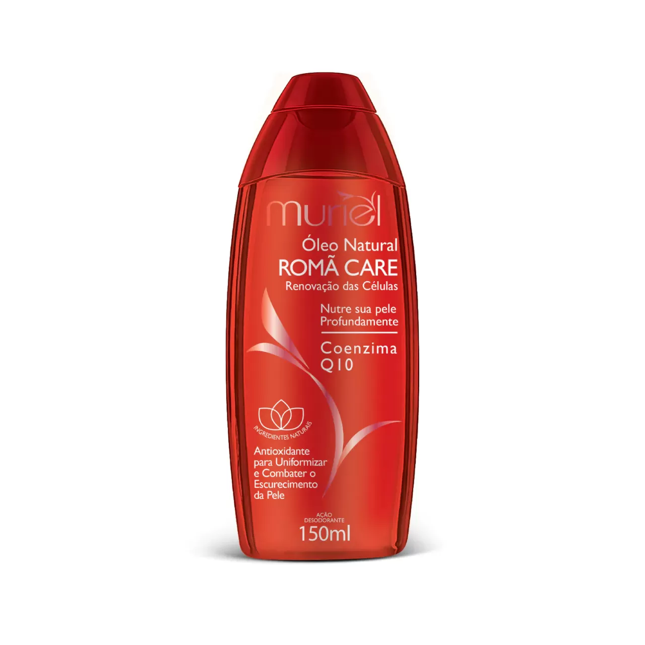 O Muriel Óleo Corporal Romã Care 150ml é um óleo hidratante corporal desenvolvido para oferecer hidratação profunda, ação antioxidante e perfumação duradoura. Enriquecido com extrato de romã, conhecido por suas propriedades revitalizantes, o produto ajuda a preservar a elasticidade da pele e prevenir o aparecimento de estrias. Sua textura leve e não pegajosa facilita a aplicação e o enxágue, deixando a pele com toque aveludado e fragrância envolvente. Indicado para todos os tipos de pele, inclusive gestantes, é ideal para uso diário, durante ou após o banho. Produto vegano, cruelty-free e com embalagem reciclável