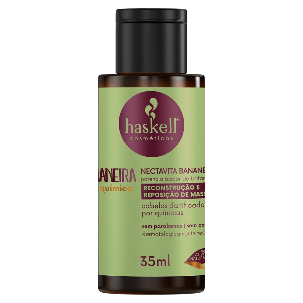 O Nectavita Bananeira Pós-Química Haskell 35ml é um tratamento intensivo para cabelos danificados por coloração, alisamento ou descoloração. Sua fórmula concentrada e óleos nutritivos de bananeira e pequi repõe massa capilar, devolve nutrientes e restaura o comportamento natural dos fios.