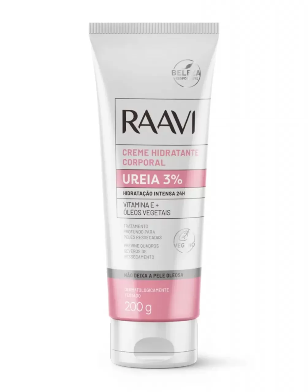 Raavi Creme Hidratante Uréia 3% Hidratação 24h 200g nutritivo protetor
