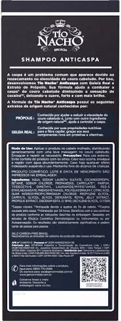 Aplique nos cabelos molhados, massageando suavemente o couro cabeludo. Enxágue e repita se necessário. Para melhores resultados, utilize diariamente. Pode ser combinado com outros produtos da linha Tio Nacho, como o Engrossador ou Antiqueda, para cuidados complementares.