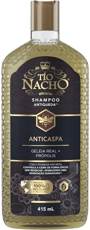 O Shampoo Condicionador Tio Nacho Anticaspa 2 em 1 415ml é a solução prática e eficaz para quem busca cabelos livres da caspa com hidratação duradoura. Com fórmula enriquecida com geleia real e extrato de própolis, este cosmético une limpeza profunda e condicionamento imediato em uma única aplicação. Sua textura em gel facilita a distribuição nos fios e proporciona sensação de frescor. Ideal para adultos com todos os tipos de cabelo, especialmente aqueles que sofrem com coceira e descamação no couro cabeludo. Fragrância suave com notas de mel.
