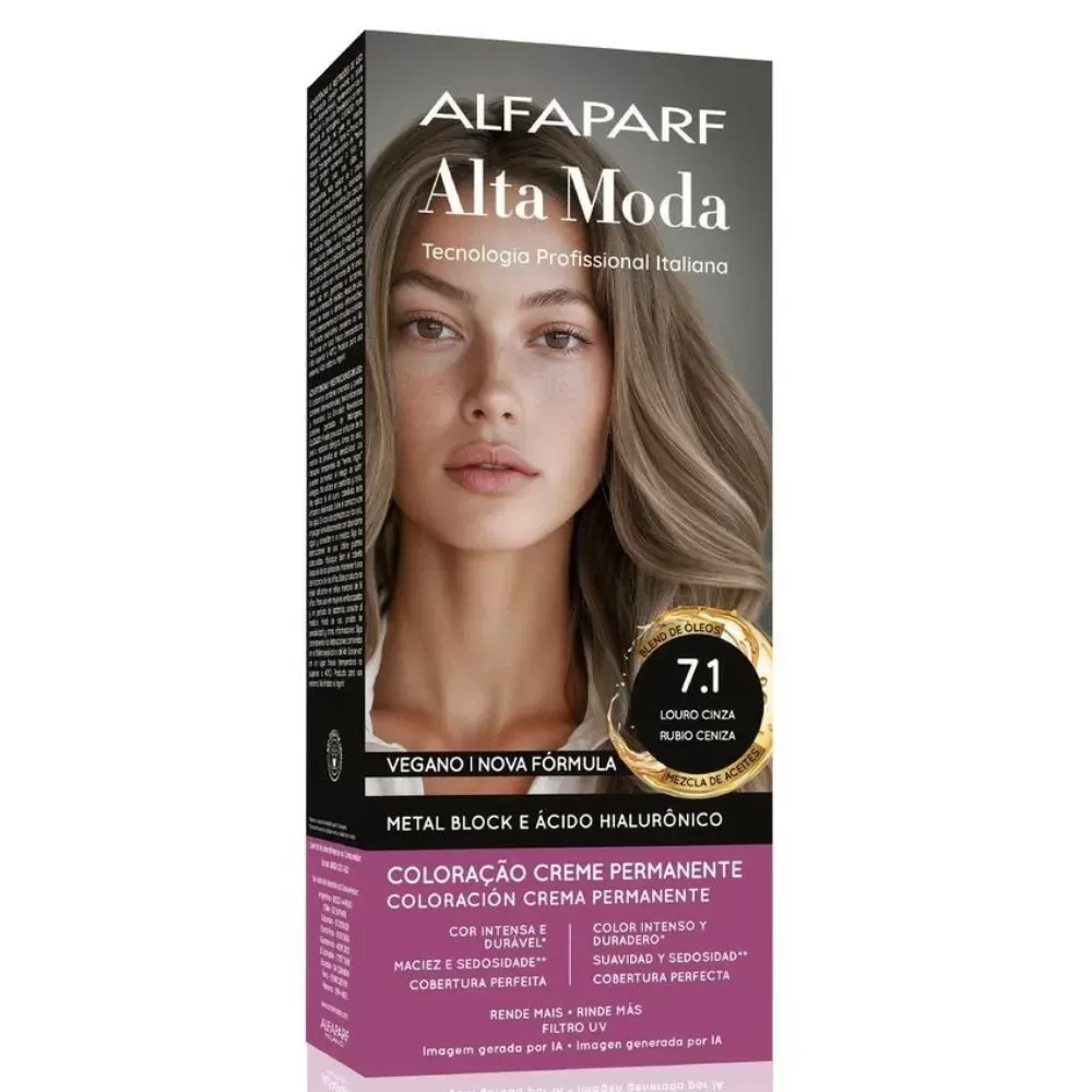 A Tintura Alta Moda 7.1 Louro Cinza 150g é uma coloração permanente desenvolvida pela Alfaparf, marca italiana reconhecida pela excelência em cosméticos capilares. Sua fórmula contém pigmentos micronizados concentrados, que penetram profundamente nos fios para garantir cor intensa e duradoura. A textura cremosa facilita a aplicação e a fragrância suave proporciona conforto durante o uso. Embalada em bisnaga prática, é indicada para quem deseja conquistar um tom loiro cinza sofisticado, com aspecto saudável e brilho natural.