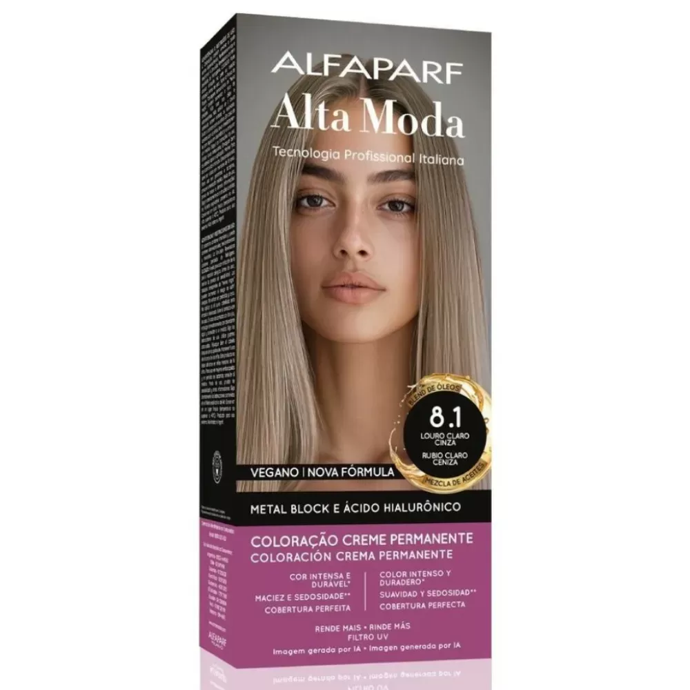 A Tintura Alta Moda 8.1 Louro Claro Cinza 150g é uma coloração permanente desenvolvida pela Alfaparf, referência mundial em cosméticos capilares. Sua fórmula contém pigmentos micronizados de alta fixação, que proporcionam cor intensa e duradoura. A textura cremosa facilita a aplicação e a fragrância suave torna o processo mais agradável. Embalada em bisnaga prática, é indicada para quem deseja conquistar um tom loiro claro cinza sofisticado, com aspecto saudável e luminoso.