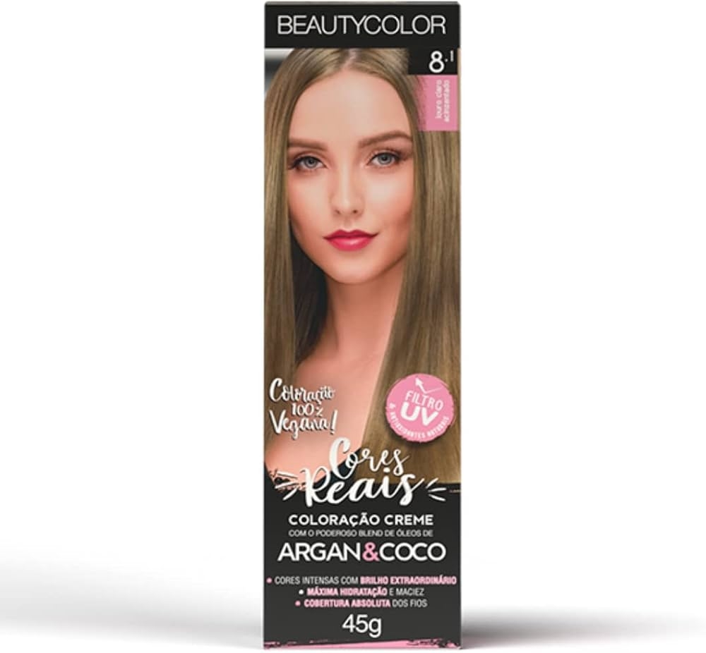 A Tintura Permanente Beauty Color 8.1 Louro Claro Acinzentado 50g proporciona cor intensa e uniforme, com fórmula enriquecida por um blend de 8 óleos nutritivos (Argan, Coco, Macadâmia, Oliva, Semente de Uva, Jojoba, Abacate e Girassol).