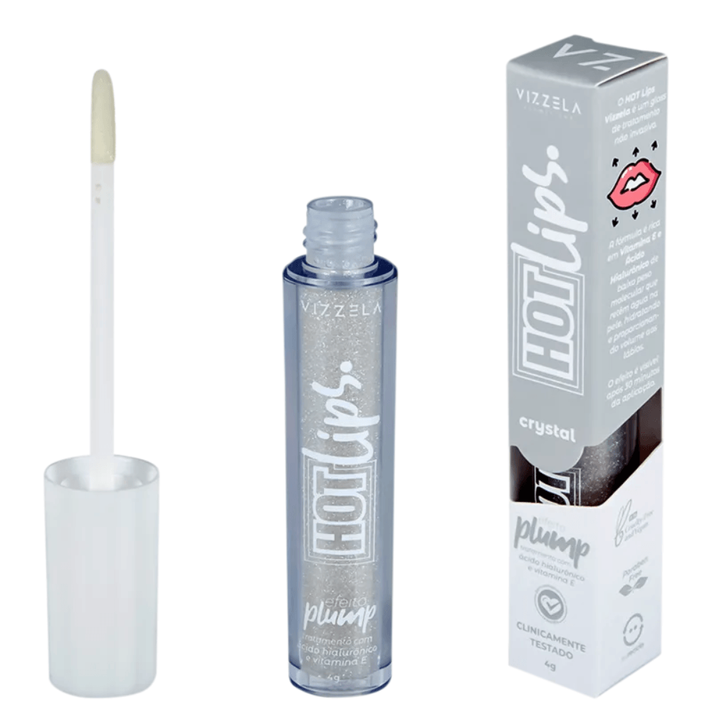 Vizzela Hot Lips Gloss Labial 4g Crystal efeito plump hidratante
